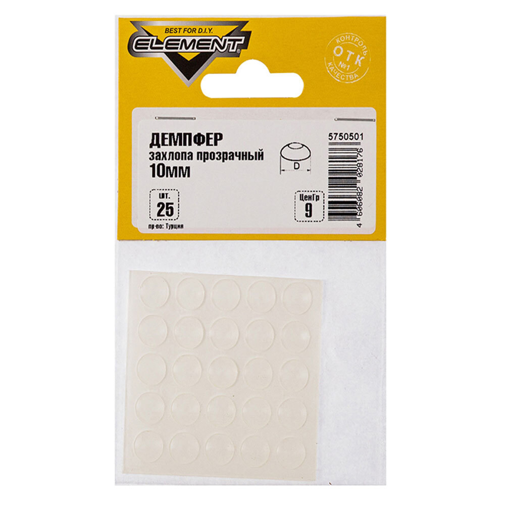 Амортизатор мебельный (демпфер) 10 мм прозрачный (25 шт.)