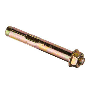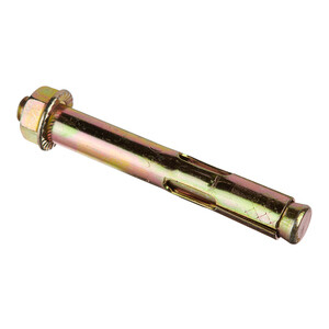 Оцинкованное покрытие обеспечит защиту от коррозии. Анкерный болт с гайкой (втулочный анкер) оснащен фиксирующей гильзой, длина которой равна размерам стального стержня. На хвостовой части шпильки выполнена клинообразная головка. При завинчивании гайки она смещается по резьбовой части. В результате перемещения происходит распирание втулки. Конструктивные особенности такого вида крепежа позволяют использовать его в легких видах бетонов с ячеистой структурой, а также в кирпиче, изготовленном из обожженной глины.