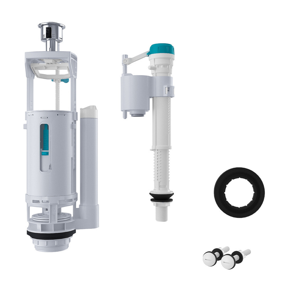 Комплектация: Двухуровневая арматура, круглая резиновая прокладка, пластиковые крепления-болты — 2 шт., паспорт изделия.