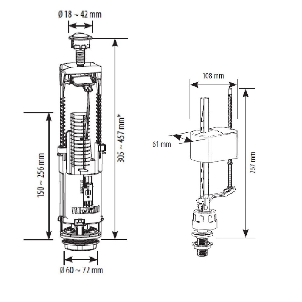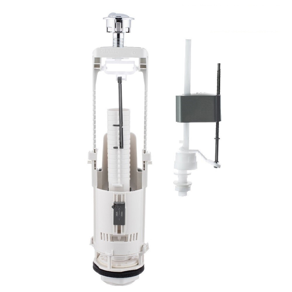 Арматура для смывных бачков с двойным кнопочным пуском и нижним подводом воды (пластиковый штуцер диаметром 1/2 дюйма). Заводская настройка большого и малого спуска воды на 6/3 л, возможна регулировка до 4/2 л. Возможность регулировки уровня остаточной воды. Хромированная кнопка устойчива к истиранию, выполнена из прочного АБС-пластика, покрытие кнопки выполнено методом гальванизации. Комфортное усилие срабатывания (ниже 20 Н). Подходит для бачков различной высоты (от 305 до 457 мм) под диаметр в крышке бачка от 18 до 42 мм. Прокладка между бачком и унитазом выполнена из пенорезины, хорошо компенсирует неровности полки унитаза. Подходит для установки в бачки брендов Cersanit, Roca, Vitra, YD и др. Продукция изготовлена в соответствии с ГОСТ 21485-2016.