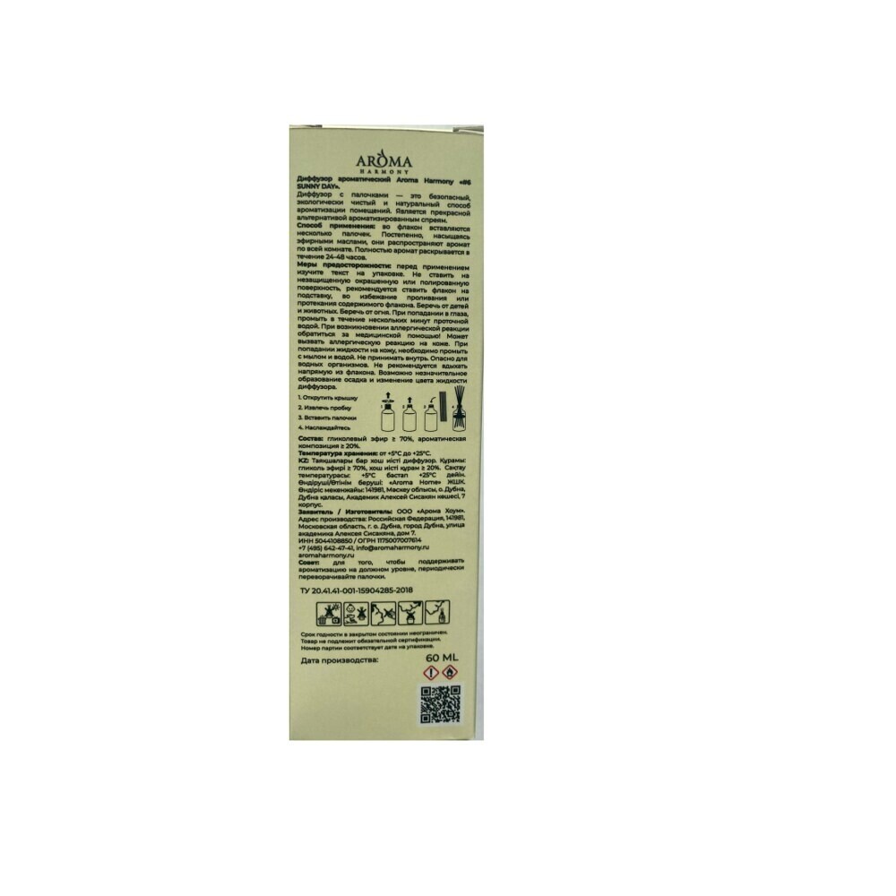 Аромадиффузор с палочками Aroma Harmony №6 Sunny Day 60 мл