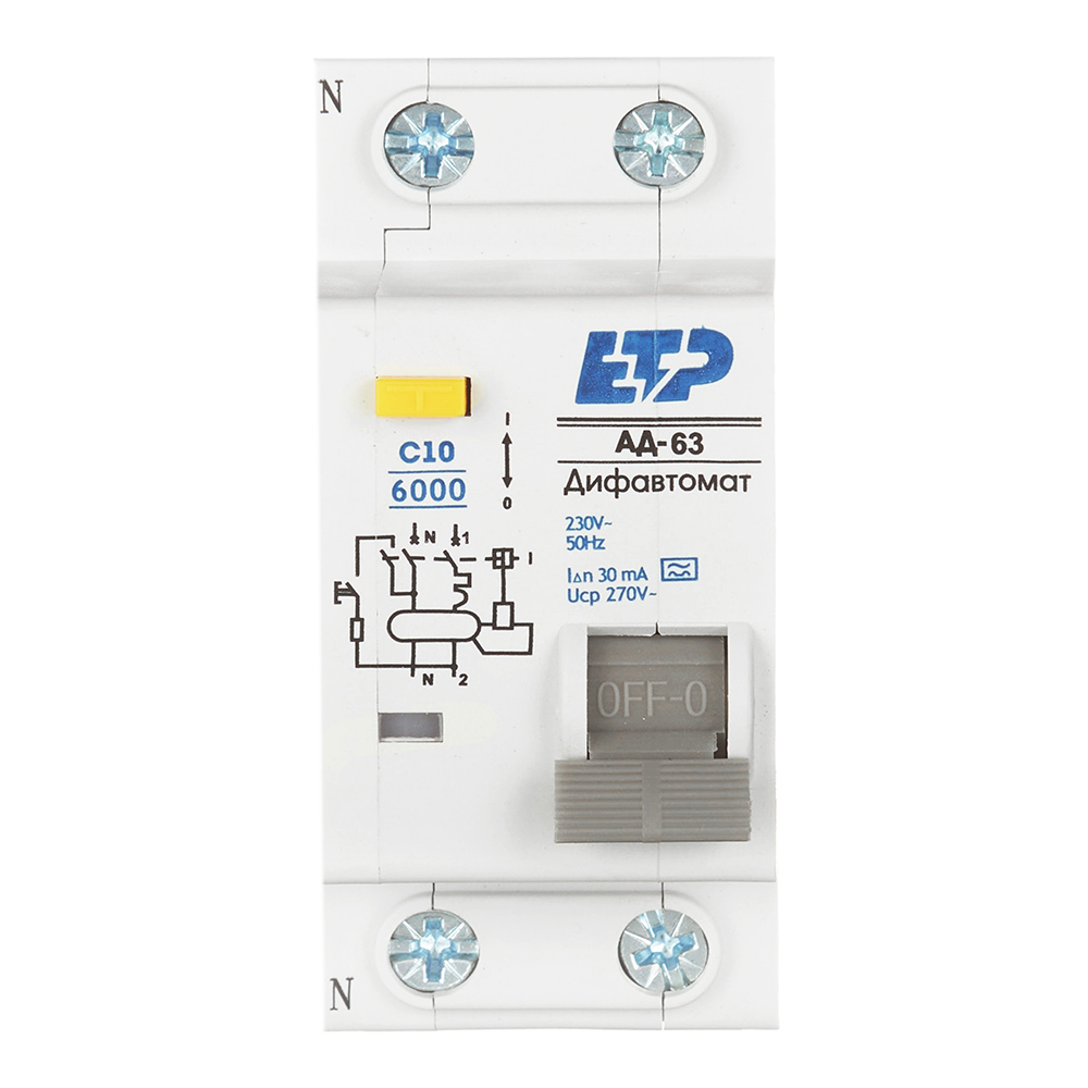 Автомат дифференциальный ETP АД-63 10А 1P+N тип A 30 мА 6 кА компактный (19052)