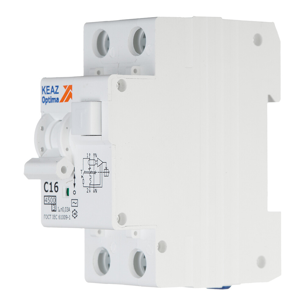 Автомат дифференциальный КЭАЗ OptiDin D63 16А 1P+N тип AC 30 мА 4,5 кА (328098)