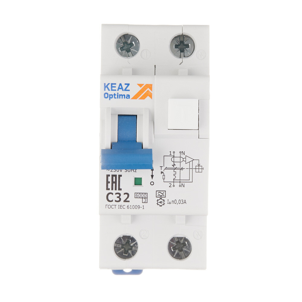 Автомат дифференциальный КЭАЗ OptiDin D63 32А 1P+N тип A 30 мА 6 кА (103510)