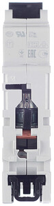 Расшифровка маркировки: 1Р — однополюсной (используется в однофазных сетях), 16А — величина номинального тока в амперах (ток, который автомат способен пропускать долгое время без отключения цепи), тип С — автомат срабатывает при токе в цепи в 5-10 раз больше номинального и применяется для защиты цепей розеток и освещения, 6кА — рабочая отключающая способность в килоамперах, АВВ — фирма производитель, S200 — серия автоматов.