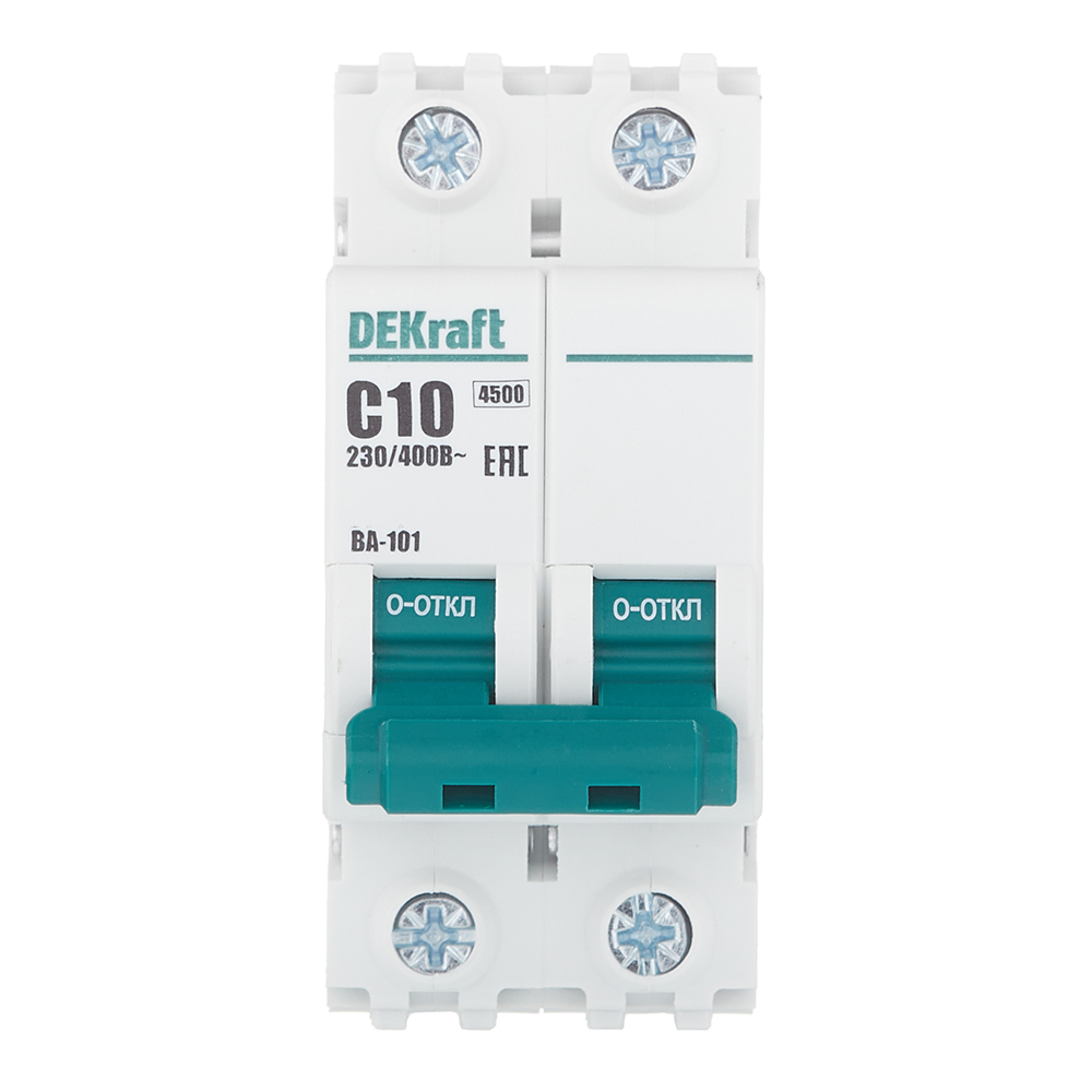 Автоматический выключатель модульный Dekraft BA-101 2P 10А тип C 4,5 кА 230/400 В (11065DEK)
