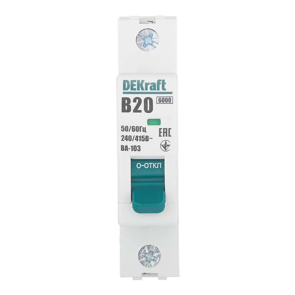 Автоматический выключатель модульный Dekraft BA-103 1P 20А тип B 6 кА 230/400 В (12210DEK)