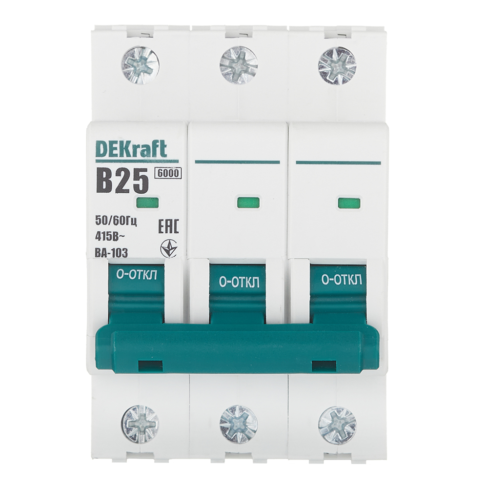 Автоматический выключатель модульный Dekraft BA-103 3P 25А тип B 6 кА 230/400 В (12243DEK)