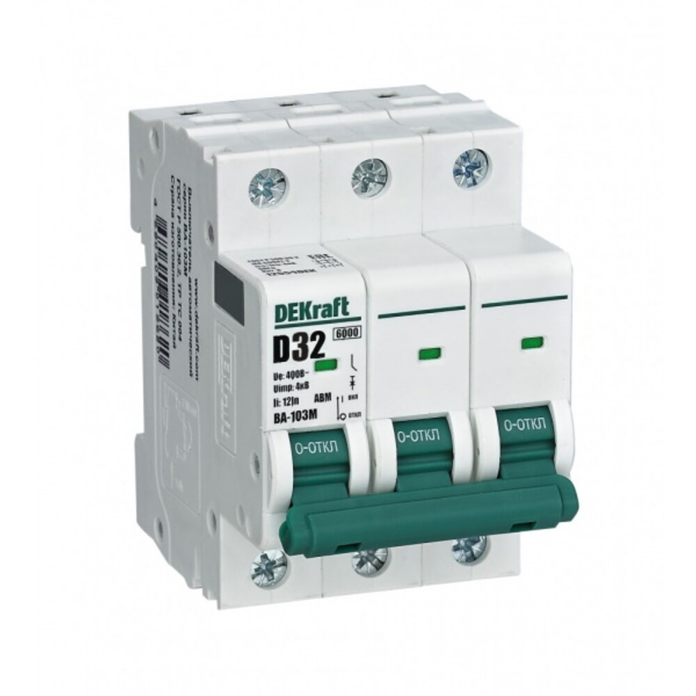 Автоматический выключатель модульный Dekraft ВА-103 3P 32А тип D 6 кА 400 В (12559DEK)