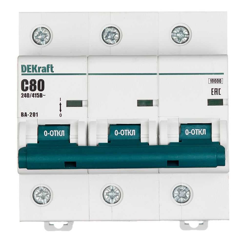 Автоматический выключатель модульный Dekraft ВА-201 3P 80А тип C 10 кА 400 В (13008DEK)