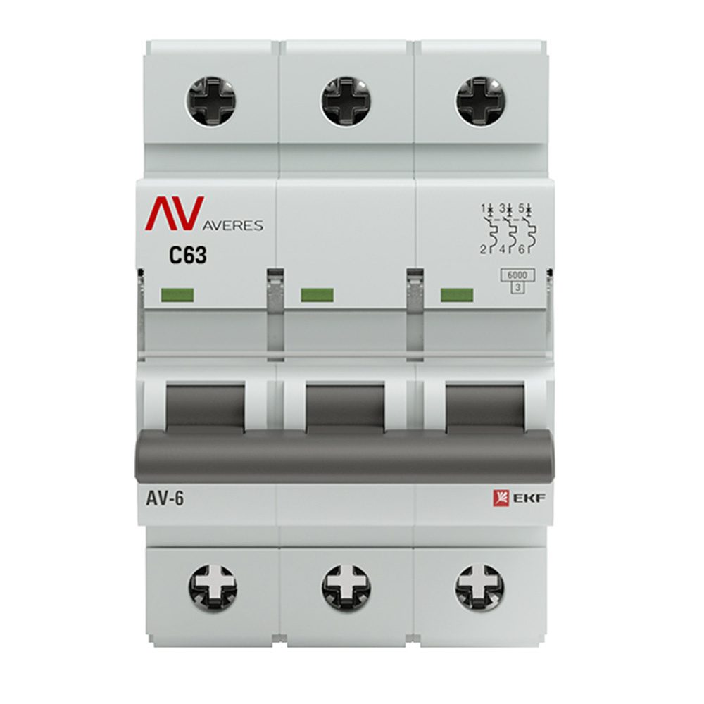 Автоматический выключатель модульный EKF Averes AV-6 3Р 63А тип C 6 кА 400 В (mcb6-3-63C-av)