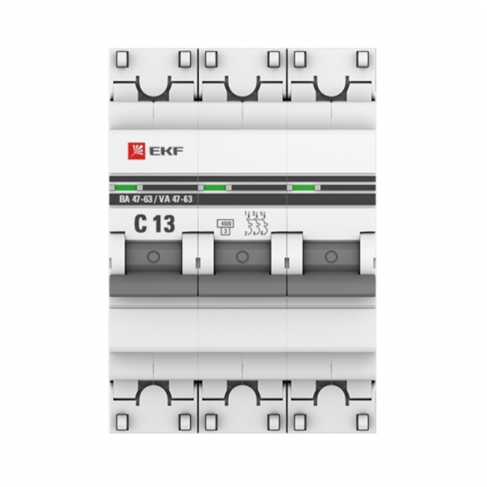 Автоматический выключатель модульный EKF PROxima ВА 47-63 3Р 13А тип C 4,5 кА 400 В (mcb4763-3-13C-pro)