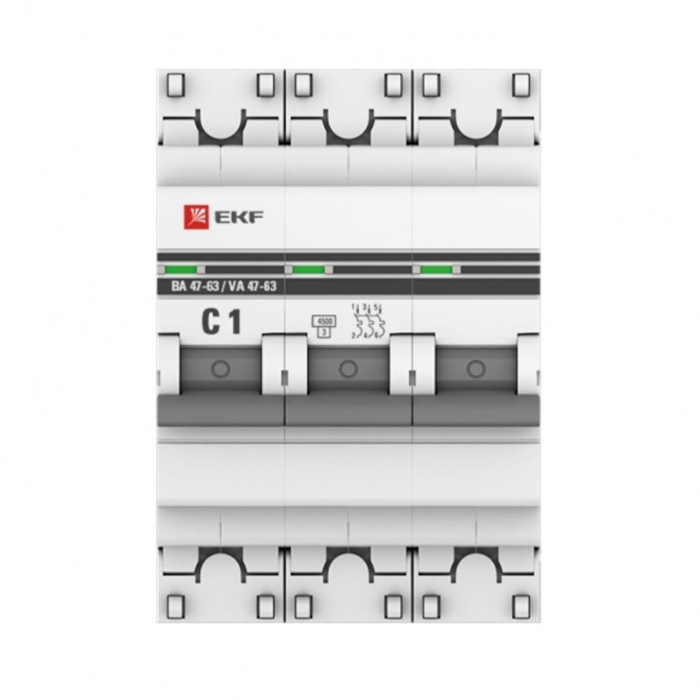 Автоматический выключатель модульный EKF PROxima ВА 47-63 3Р 1А тип C 4,5 кА 400 В (mcb4763-3-01C-pro)