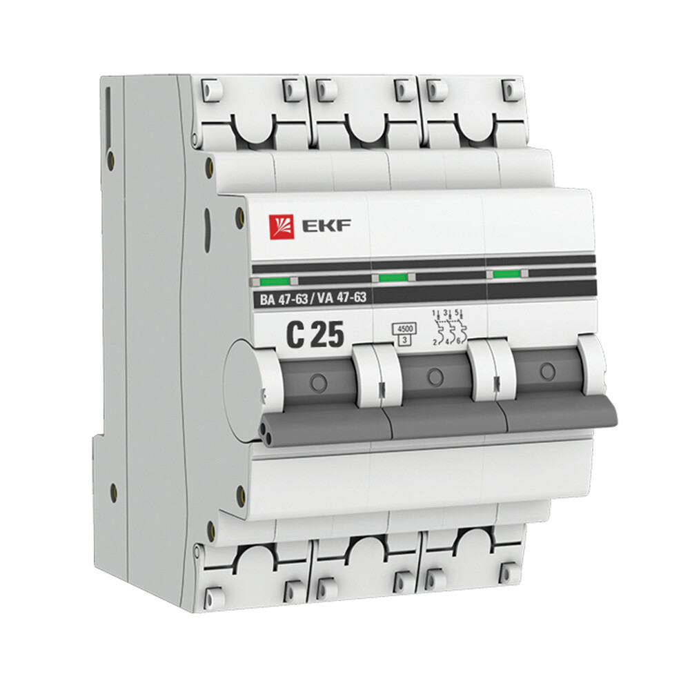 Автоматический выключатель модульный EKF PROxima ВА 47-63 3Р 25А тип C 4,5 кА 400 В (mcb4763-3-25C-pro)