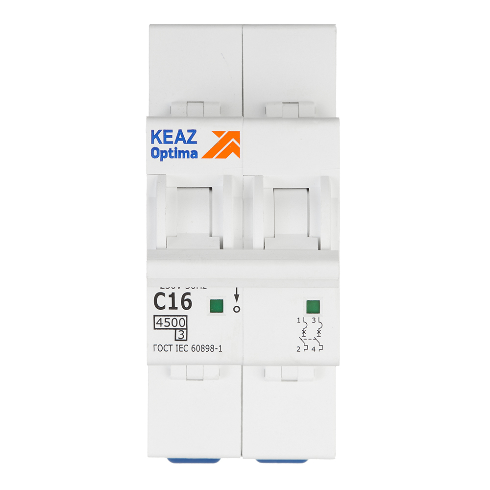 Автоматический выключатель модульный КЭАЗ OptiDin BM63 2P 16А тип C 4,5 кА 230/400 В (326803)