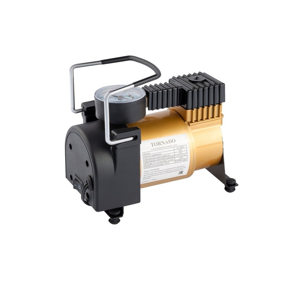 Компрессор Autovirazh Tornado Standart AC-580B, в комплектации компрессора предусмотрен набор универсальных переходников для велосипедных шин, лодок, матрасов, мячей и детских надувных игрушек. Устройство обладает небольшим весом. Длина воздушного шланга составляет 75 см.