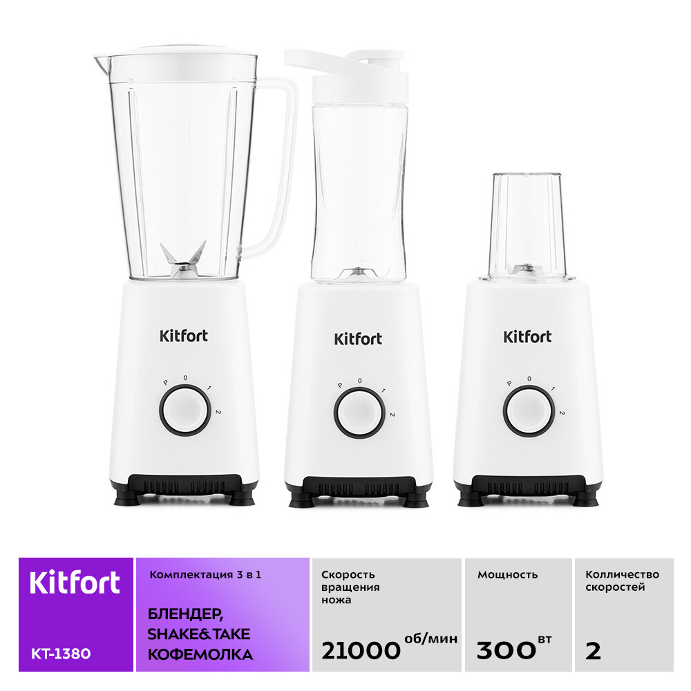 Блендер стационарный Kitfort КТ-1380 300 Вт 1 л белый