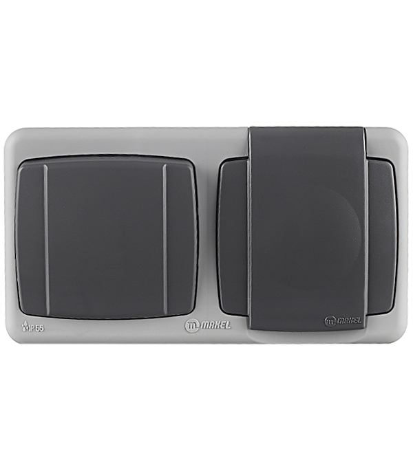 Блок выключатель и розетка Makel Mimoza одноклавишный накладной серый (36064202)