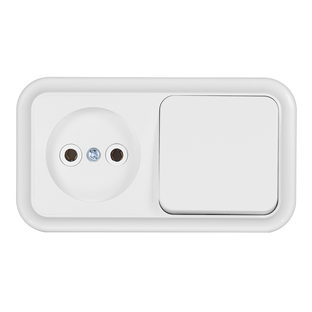 Блок выключатель и розетка Svet одноклавишный накладной белый (EV0362-5140)