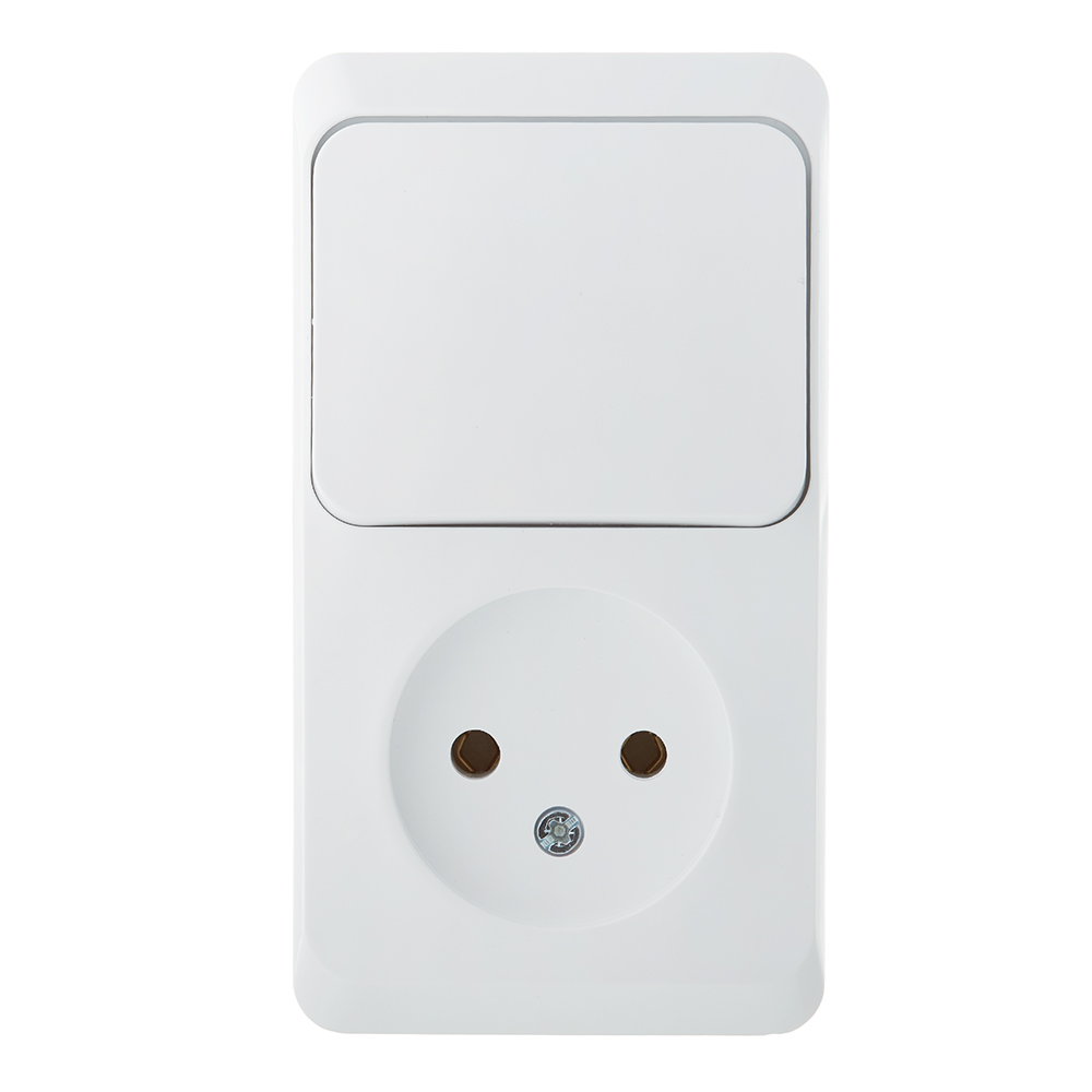 Блок выключатель и розетка Systeme Electric Этюд одноклавишный накладной белый (BPA16-204B)