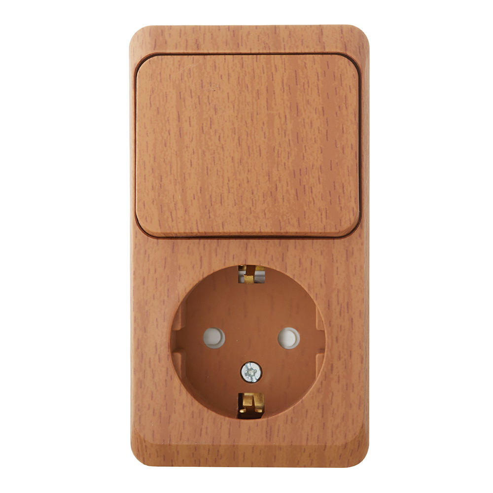 Блок выключатель и розетка Systeme Electric Этюд одноклавишный накладной бук (BPA16-201T)
