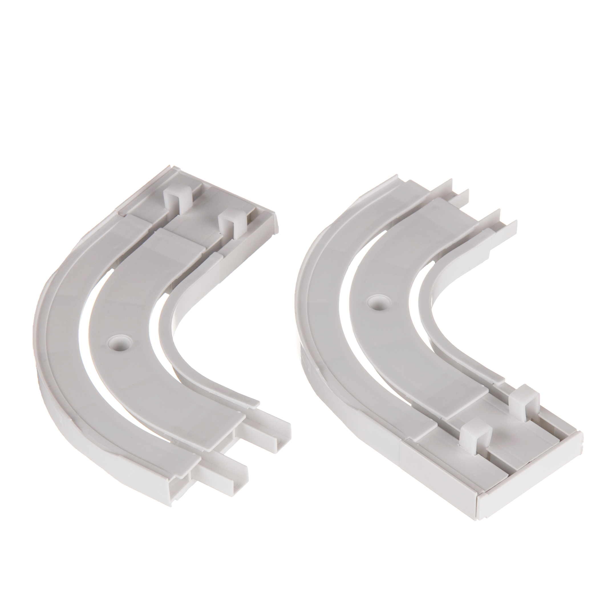 Дополнительный функциональный элемент пластмассового двухрядного карниза для создания декоративных скругленных боковин.