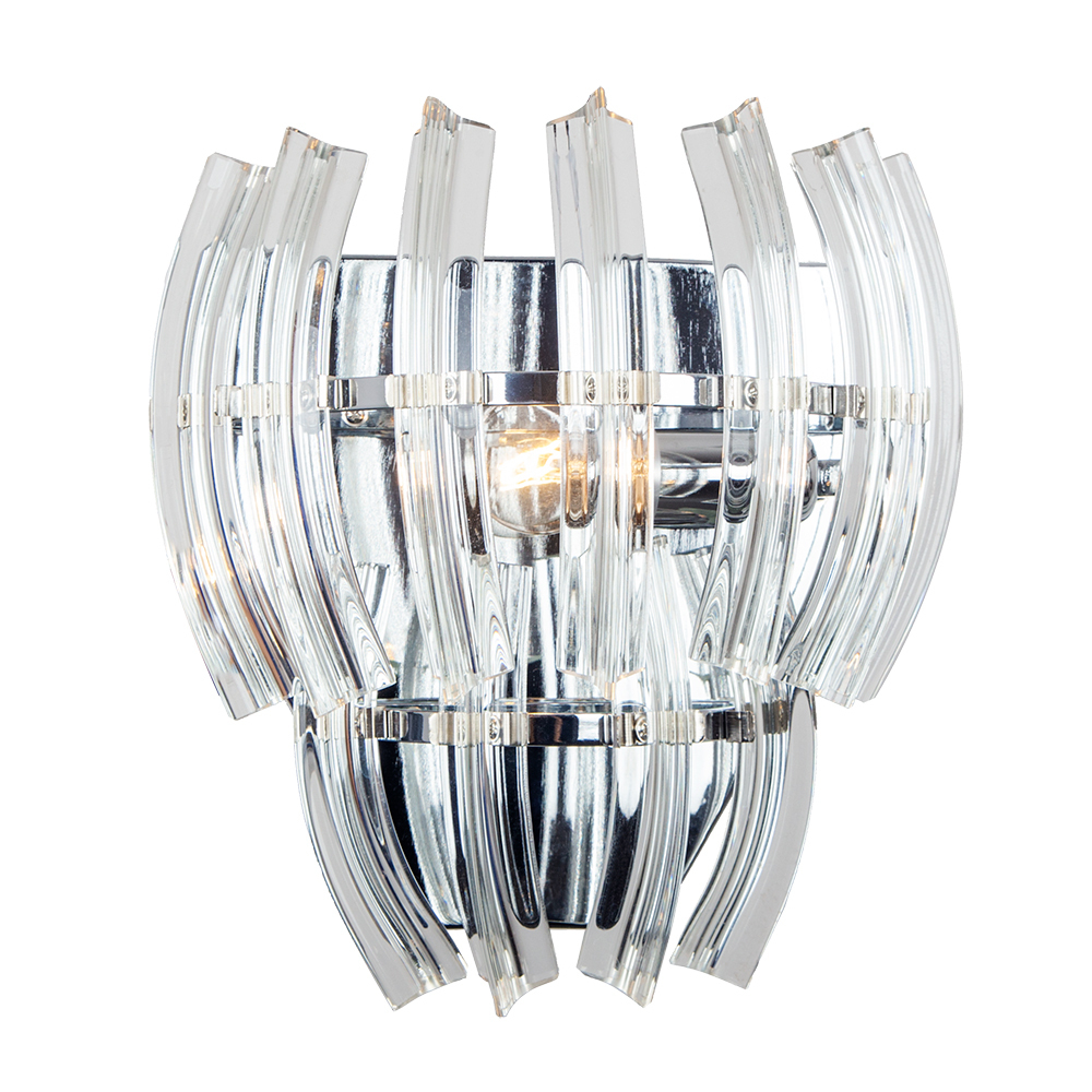 Светильник A1054AP-1CC серии Ella подчеркнет стиль помещения. Размеры 16x25x27 см. Параметры пылевлагозащиты — IP20. Форма полукруглая. Плафон стеклянный прозрачный. Использует лампу с цоколем E14. Площадь освещения охватывает 1 м2. Идеально подходит для гостиной или спальни.