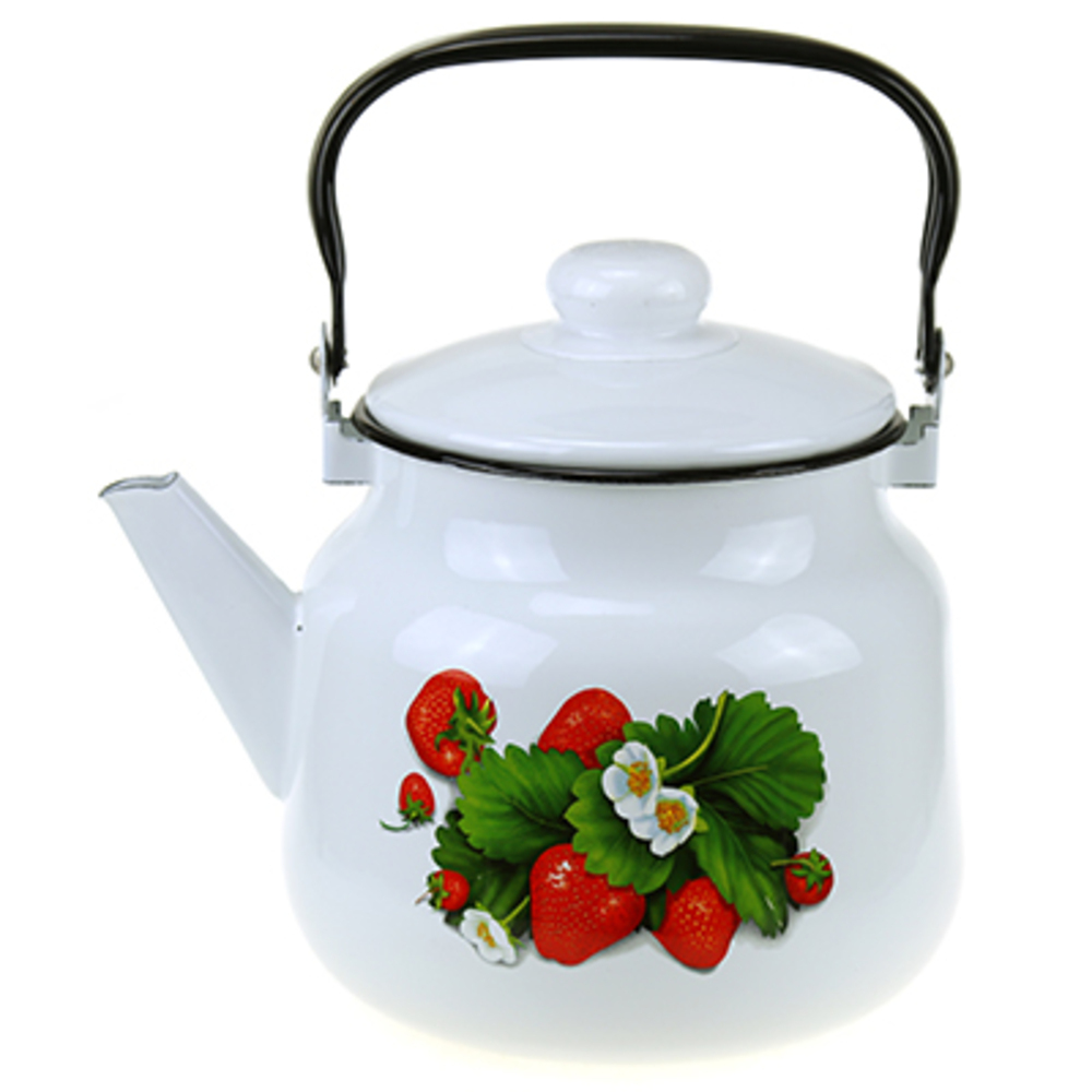 Чайник эмалированный Магнитогорская эмаль Земляника 3,5 л белый