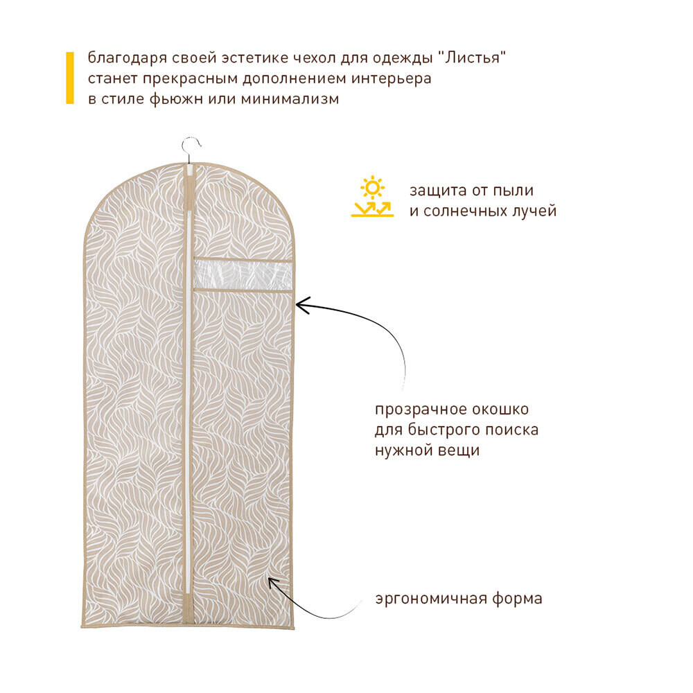 Чехол для одежды Листья 1300х600 мм бежевый