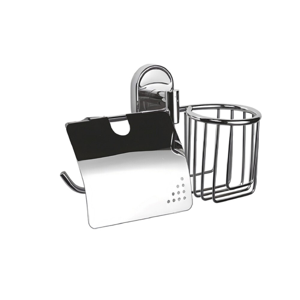 Держатель для туалетной бумаги Haiba с крышкой и корзиной для освежителя металл хром (HB1903-1)