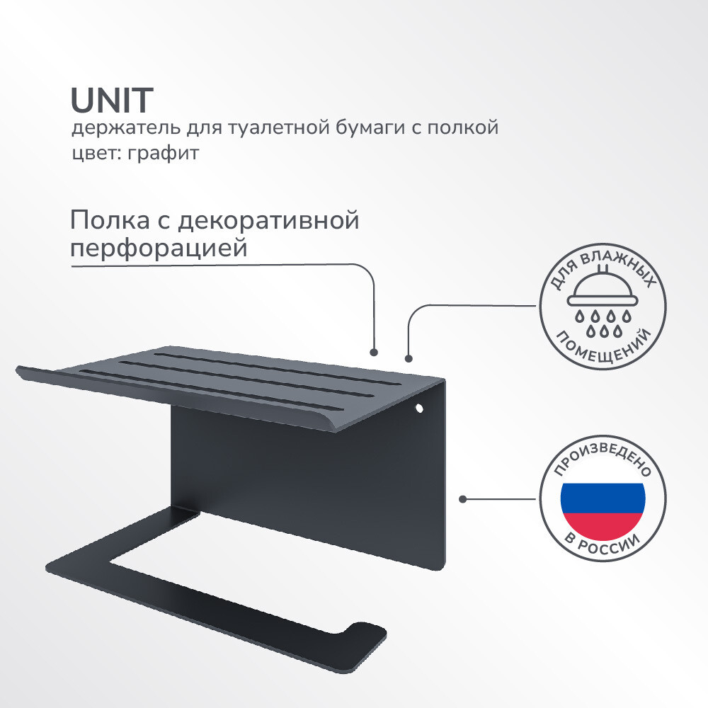 Держатель для туалетной бумаги Unit с полкой металл графит (74104560)