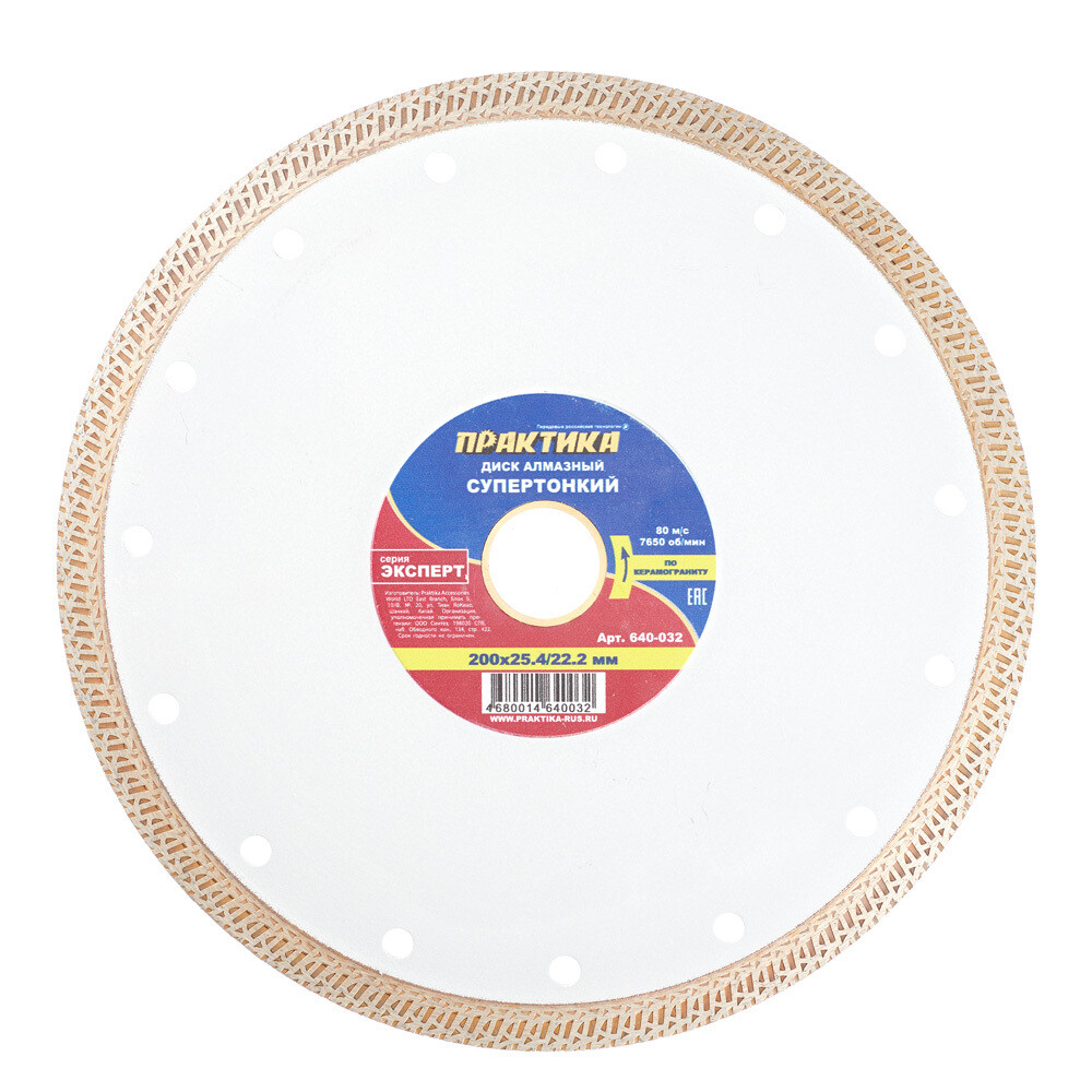 Диск алмазный по керамограниту Практика 200×25,4×1,8 мм турбо мокрый рез (640-032)