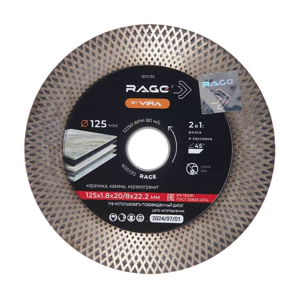 Диск алмазный по керамограниту Rage by Vira 125х22,2х1,8 мм сплошной сухой рез (600130)