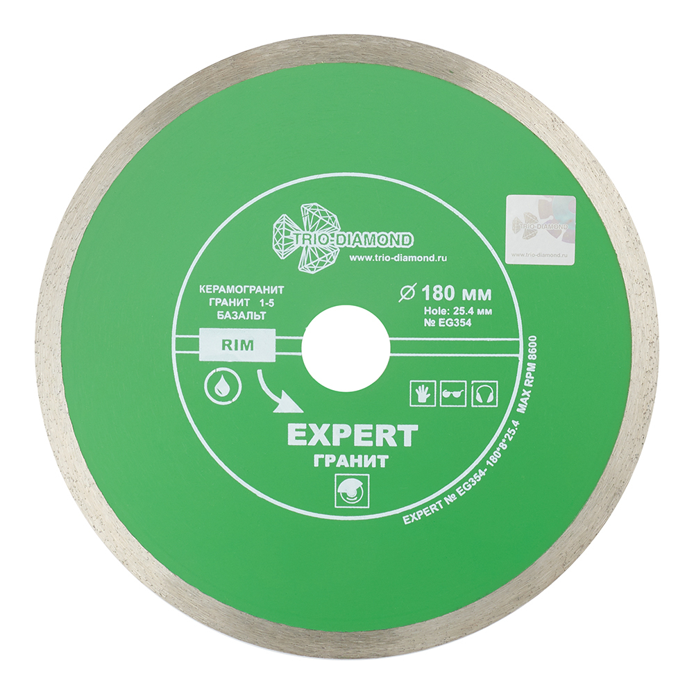 Диск алмазный по керамограниту Trio-Diamond Hot Pres 180×25,4×1,8 мм сплошной мокрый рез (EG354)