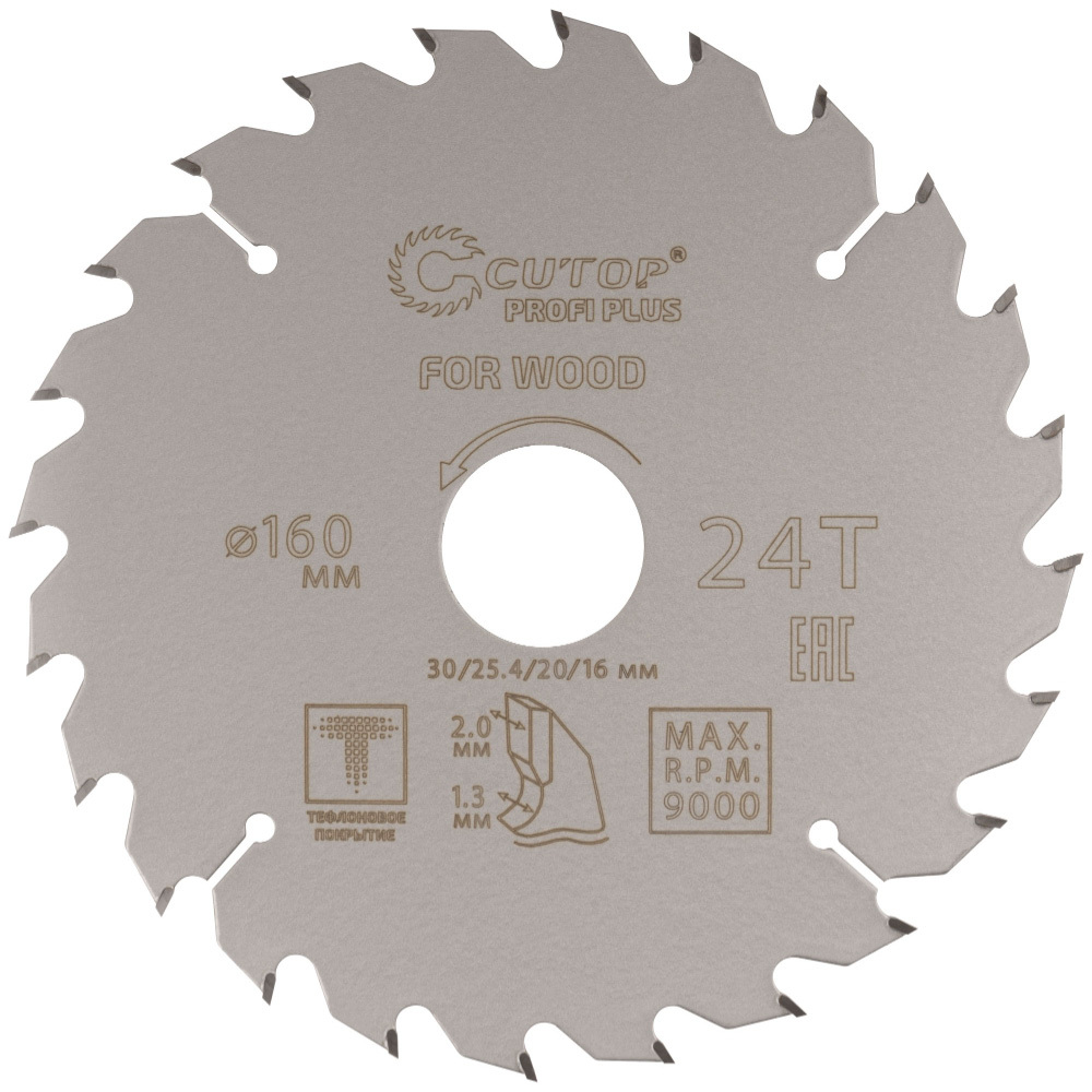 Диск пильный по дереву Cutop Profi plus 160х30/25,4/20/16х2 мм 24 зуба (75-16024Т)