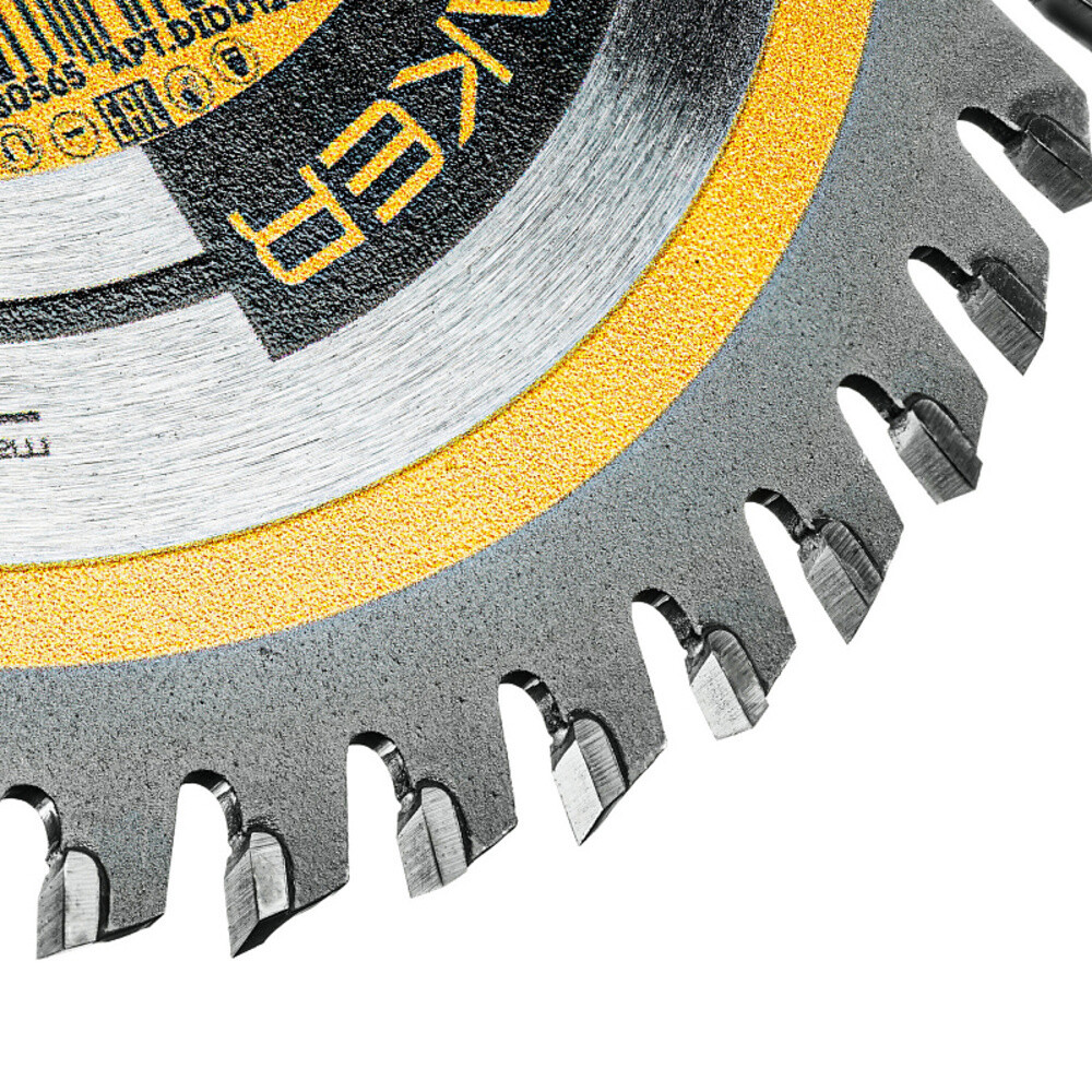 Диск пильный для работ по дереву, фанере, ДСП. Основа диска выполнена из углеродистой стали, напайки на режущих зубьях из твердого карбидно-вольфрамового сплава «победита». Качество сплава и размер твердосплавных напаек обеспечивают диску высокий рабочий ресурс, длительное сохранение скорости и качества реза, высокую пригодность к правке и заточке. Напаянные индуктивным способом твердосплавные переменные зубья с агрессивным углом резания АТВ обеспечивают одновременно быстрое и точное пиление.