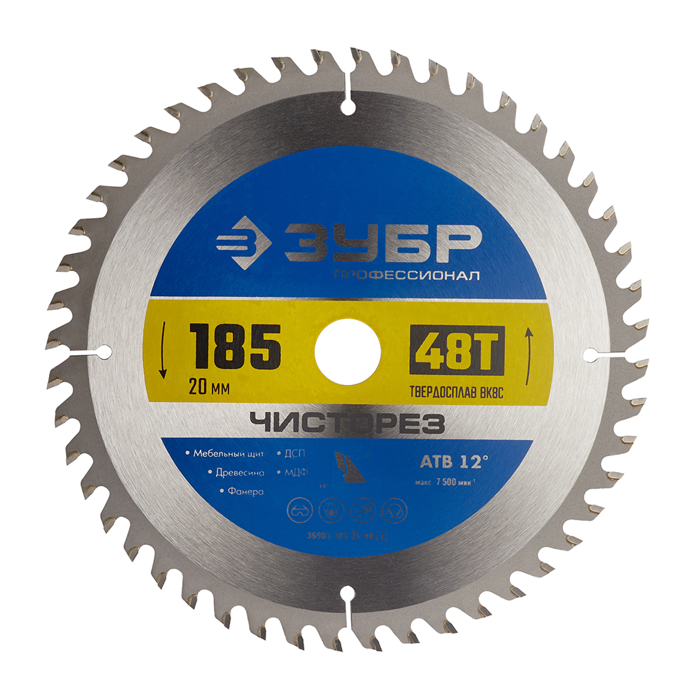 Диск пильный по дереву Зубр 185х20х1,6 мм 48 зубьев (36905-185-20-48_z01)