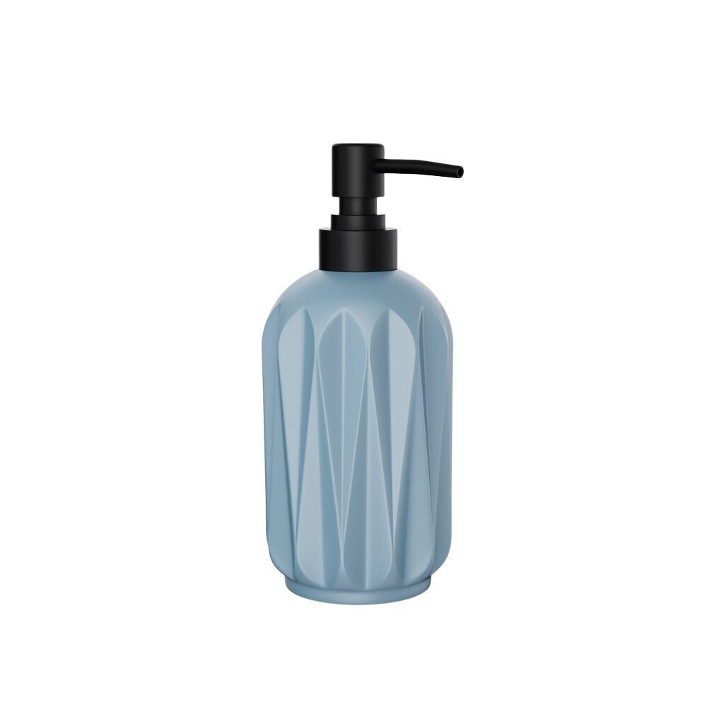 Дозатор настольный «Triangle» из полирезина — современный стиль и модная брутальность в каждой капле! Этот изысканный аксессуар из полирезина не только добавит необычный серо-голубой акцент в ваш интерьер, но и придаст модный шарм с черным цветом помпы дозатора и ручки ершика, подчеркивая элегантный рисунок граней.