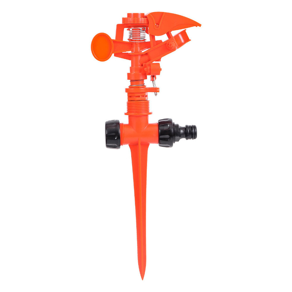 Импульсный распылитель используется для орошения больших секторов площадей. Возможность регулировки угла распыла обеспечивает качественный полив под деревьями и кустами.