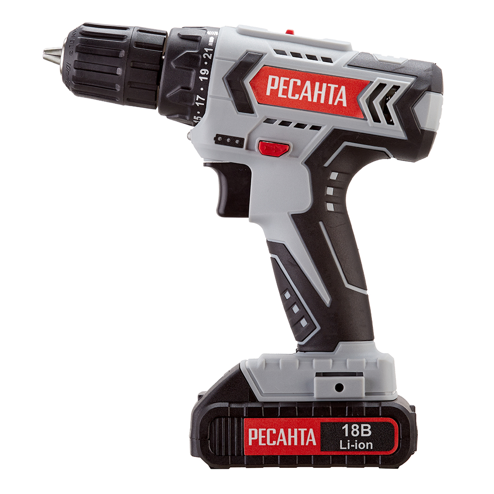 Главная / Каталог / Инструмент / Электроинструмент / Дрели и шуруповерты / Дрели-шуруповерты / Дрель-шуруповерт аккумуляторная Ресанта ДА-18-2ЛК 18 В 2 Ач Li-Ion 2 АКБ иЗУ (75/14/5)