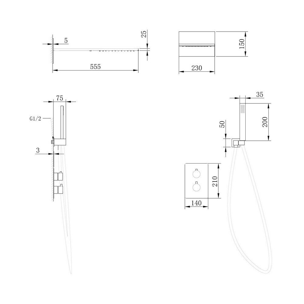 Душевая система Abber Weiss Insel встраиваемая с верхним душем с лейкой со смесителем хром (AF8052)