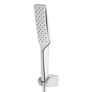 В комплектацию входит: корпус смесителя с картриджем с керамическими пластинами и трехпозиционным картриджным переключателем; декоративная накладка для корпуса смесителя; металлическая рукоятка; рукоятка дивертора с винтом и декоративной заглушкой; декоративная накладка (2 шт.); настенный держатель для лейки верхнего душа с дюбелями и шурупами; однофункциональный верхний душ; излив с аэратором (регулятором расхода воды); подключение для душевого шланга; настенный держатель для душевой лейки с дюбелями и шурупами; однофункциональная душевая лейка; душевой шланг (2 м) с прокладками; гарантийный талон.