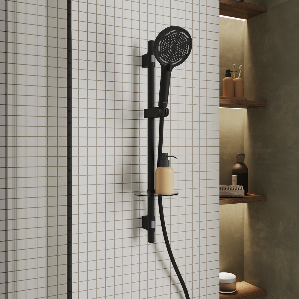 Душевой гарнитур Ideal Spa в трендовом черном цвете гармонично смотрится практически в любом современном интерьере ванной комнаты.