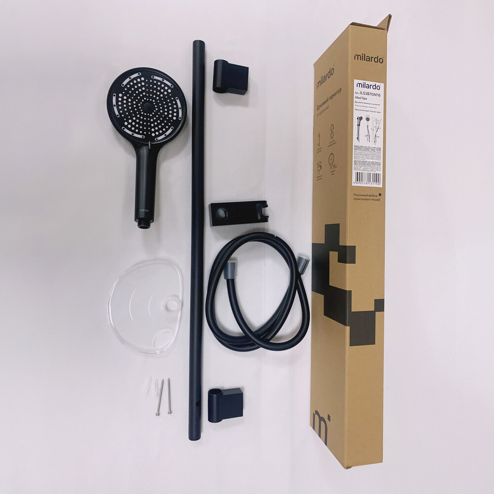 Душевой комплект Milardo Ideal Spa с лейкой со стойкой с мыльницей черный (ILS3B70M16)