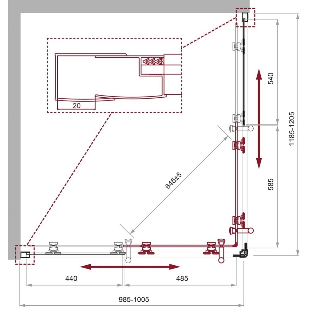 Универсальный душевой уголок Uno подчеркнет современный стиль ванной комнаты. Конструкция выполнена из безопасного прозрачного закаленного стекла толщиной 5 мм, помещенного в хромированный профиль из анодированного алюминия. Две раздвижные двери установлены на двойные подшипниковые ролики из цинкового сплава, которые рассчитаны на 35 000 рабочих циклов. Они закрываются максимально герметично. Боковые профили регулируются по ширине, что значительно упрощает и облегчает монтаж. Установка на пол или на поддон.