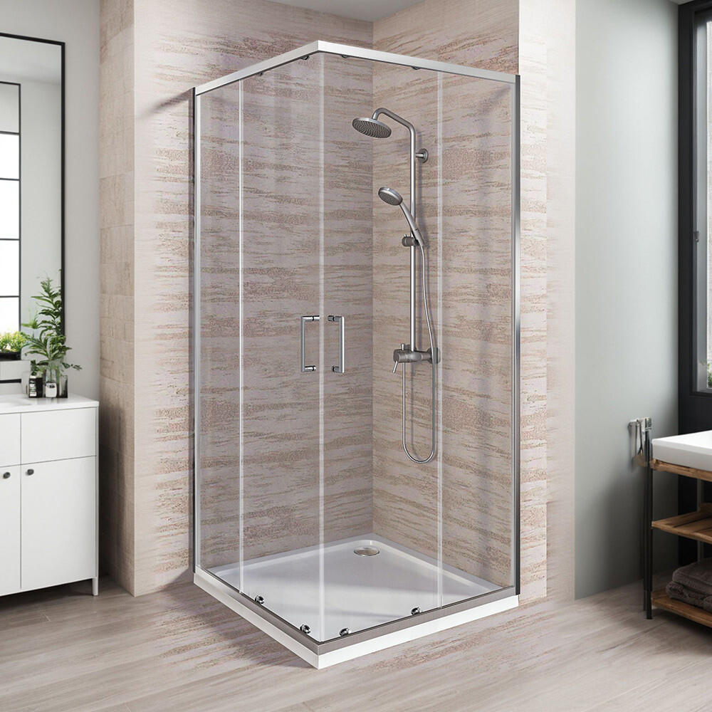 Душевое ограждение из закаленного безопасного стекла. Высота ограждений 1900 мм. Профиль исполнен в цвете хром. Нижние ролики с механизмом отстегивания, обеспечивают легкий доступ к стеклу и профилям для очистки. Ручки пластиковые в цвет профиля. Стыковые элементы стеклянного ограждения снабжены влагостойкими силиконовыми уплотнителями. Магнитное закрывание обеспечивает герметичное прилегание дверей. Установка возможна как на поддон, так и на пол в ванной комнате.