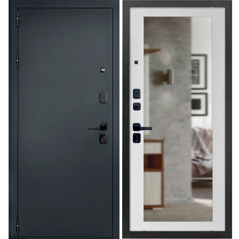 Дверь входная Дверной континент Брест левая антик серебро — белый матовый с зеркалом 860х2050 мм