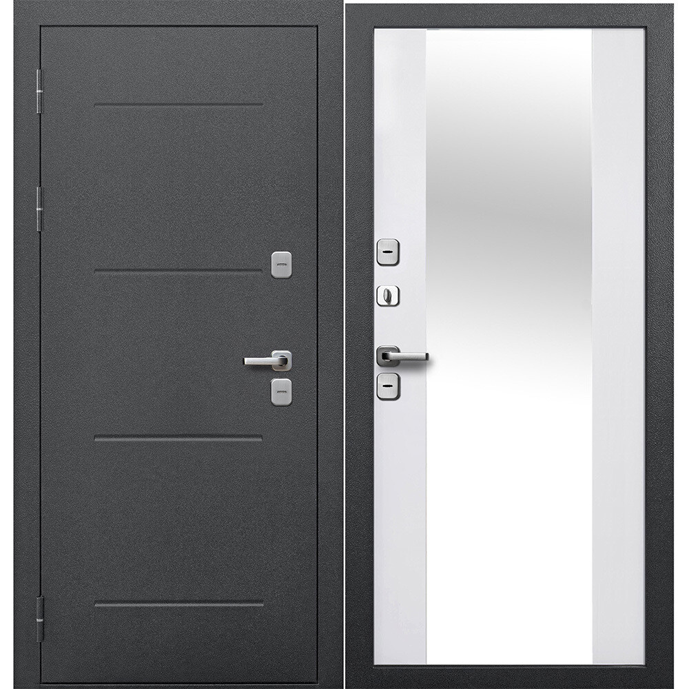 Дверь входная с терморазрывом Ferroni Isoterma левая антик серебро — эмалит белый с зеркалом 960х2050 мм