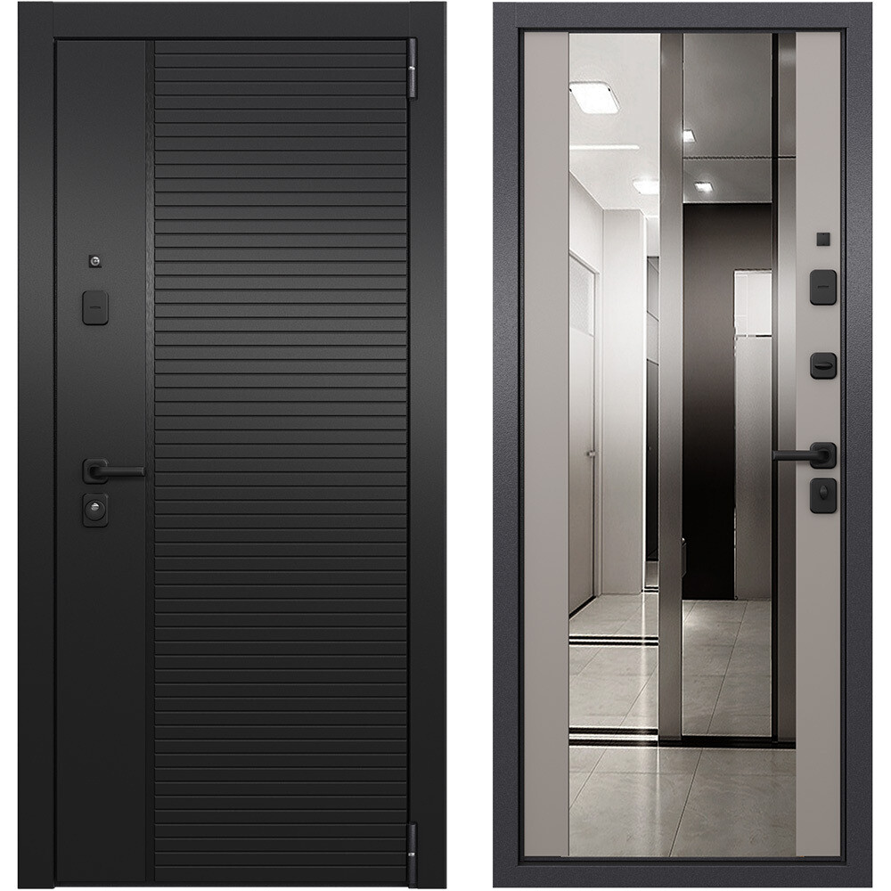 Дверь входная Torex Талса Скай правая крема — черная шагрень с зеркалом 860х2050 мм