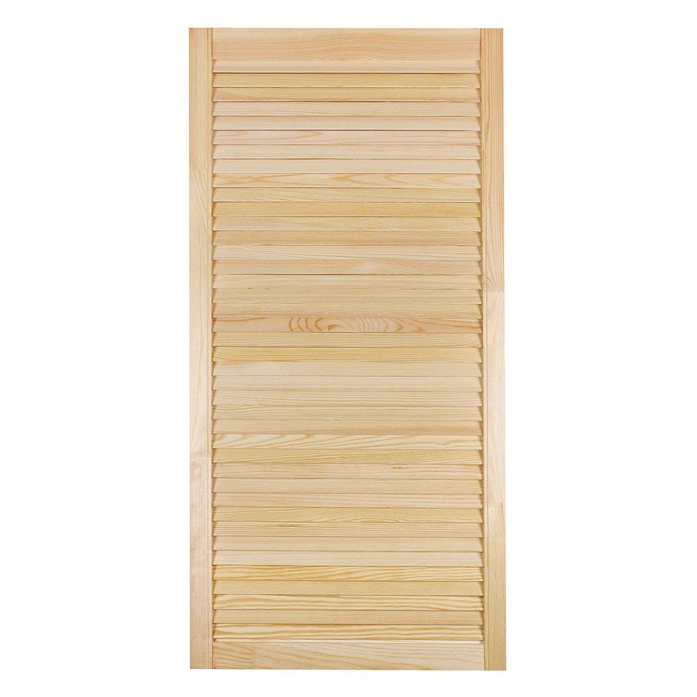 Дверь жалюзийная, хвоя сорт А. Дверь может быть использована в гардеробных, шкафах, прихожих, в туалете и ванных комнатах, в кухне и на кухонных гарнитурах. Фасады изготовлены из хвойных пород деревьев с соблюдением требуемых стандартов.